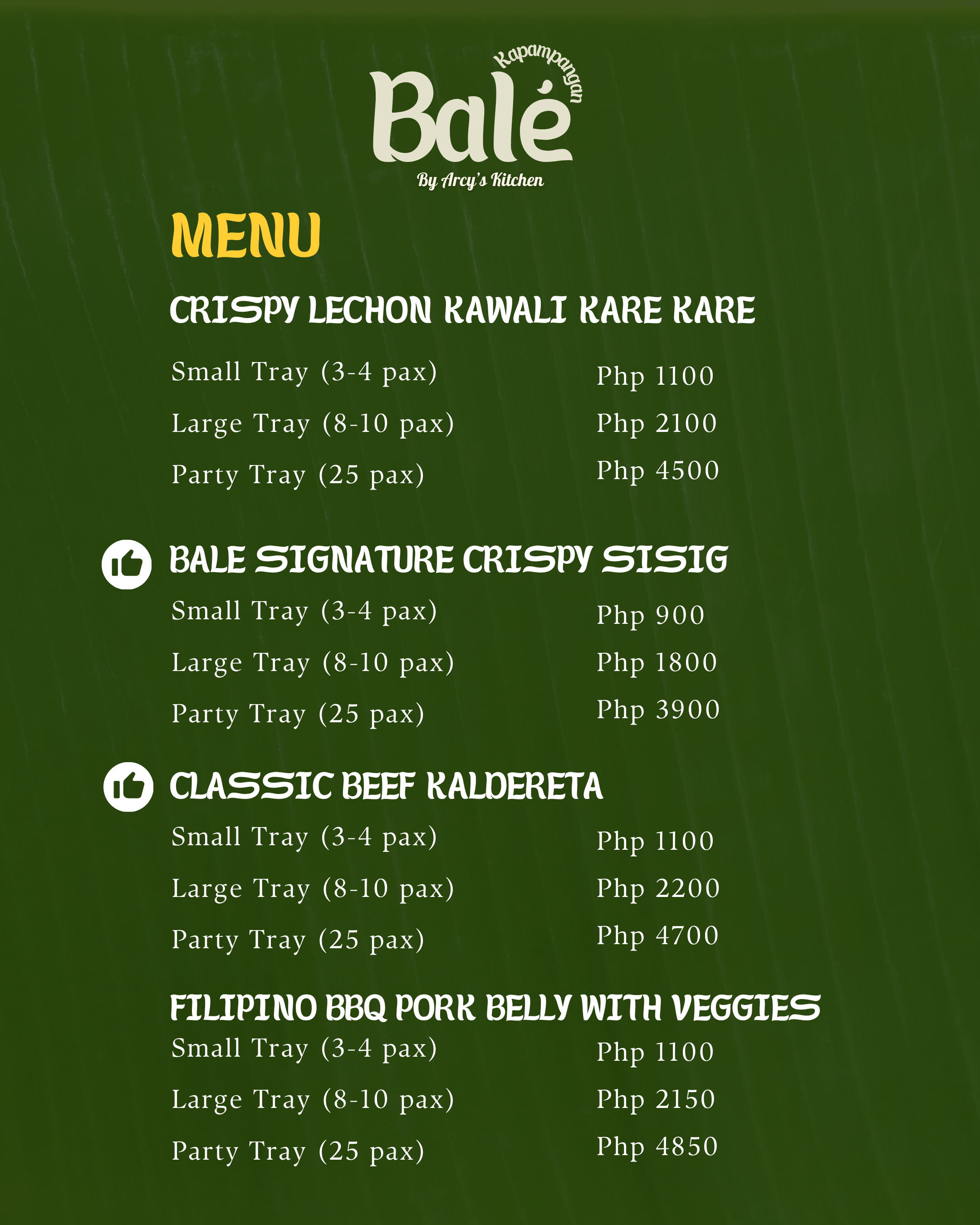 Bale Fiesta Trays Menu